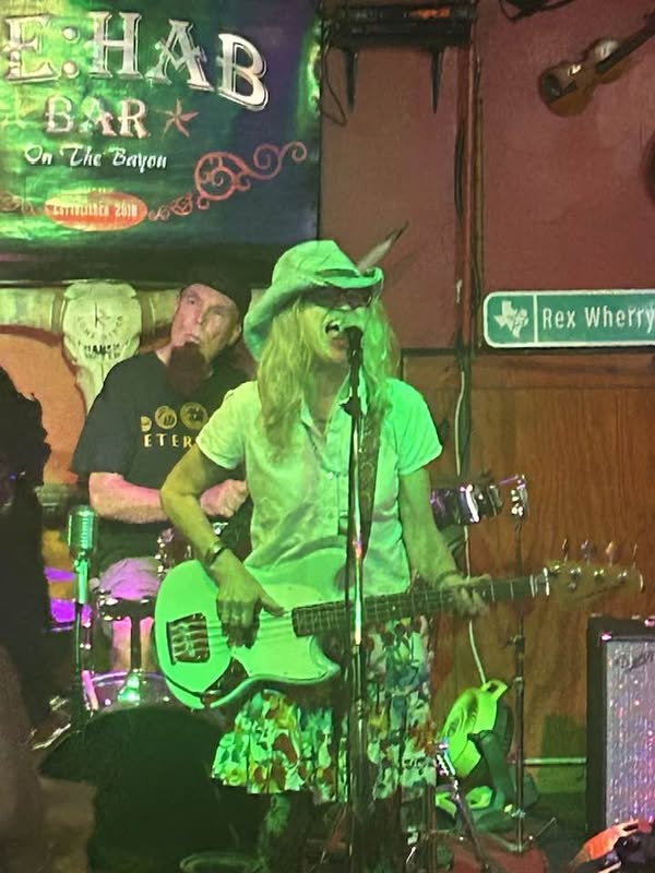 We also got a return invite to Gracie Miller’s hotspot in Hot-Town REHAB: bar on the bayou September 22, 2024 [Lips with Steve Heatherington; photo by Rebecca Bas]: